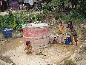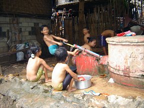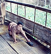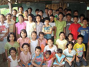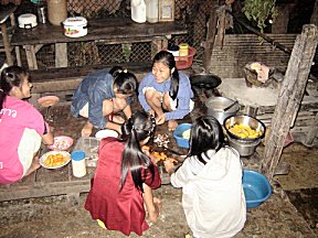 In 2008 the only source of light was candles in most of the homes. Some homes, that were close enough to the hospital, had access to the hospital generator and could have one electric light for 2 hours in the evenings. Mi Nge's home now has a single light in 4 of the rooms. Lighting by candles has always been a fire hazard, and with 56 people in one home, the chances of having a fire were great, especially when all the children studied in the evenings. The normal procedure when they studied was to drop hot wax on the bamboo floor close to their books and immediately set the small candle on it to keep it steady. When they walked around, they held the candle between their fingers. The lights have greatly improved their lives. Since it gets dark early there, we were only able to take pictures for a short time. We were going to have to finish up our picture taking/registration in the morning before we left to catch the line bus back to Mae Sot.
