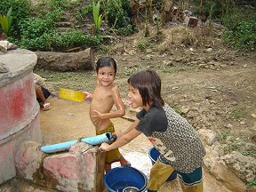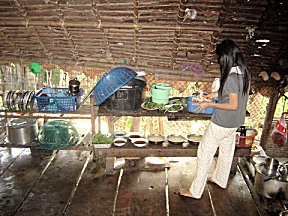 Their bamboo home had been added onto, accommodating their expanding family. The children are divided into groups and each group is responsible for different chores.