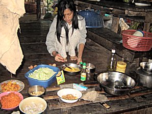 This photo on the left shows one of the Children, Evergreen, cooking for us while we were staying in their home.