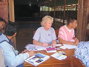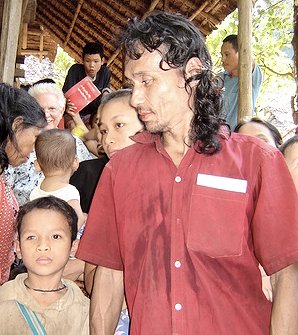 We caught a bus out of Lampang to Chiang Mai and then were able to take a van bus North to Mae Sariang. Our friend, Honest Roger, had made arrangements for one of the men he works with to get us hotel reservations in a little guest house and pick us up at the bus station when we arrived. He told us that another driver I had used several years ago would pick us up at 7 am and drive us up to the camp. He would drop us off and go to another camp for a training program they were instituting and would be back to get us around 3 pm. The drive up the mountain was better than it was last year since many of the deep ruts had been graded, but once we hit the ungraded part is was a very slow and a hard ride. Praise the Lord for drivers that know how to ride the ridges of the ruts and negotiate around blind "S" curves.