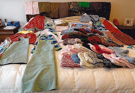We'd like to give a special thanks to the ladies from Pleasant Grove Baptist Church, Ridgecrest Baptist Church and Harvest Church who have blessed our children with dresses, shorts, caps and scarves and blankets. Many hours of love have gone into making each item. We were able to take 50 lbs. of clothing with us this year. Below are some photos of the wonderful gifts they donated.