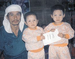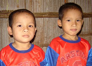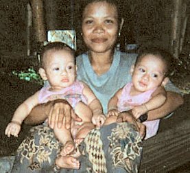 While I was visiting Mae Rah Moo refugee camp in January 2001 twin boys were born to a dear friend of mine. I was asked to name them and I chose "Benjamin" and "Joseph". Benjamin was very tiny and his lungs were not properly developed and he required longer hospitalization. Because they were generously sponsored by a family in Hawaii, the parents were able to buy milk powder to supplement their diet and to buy needed medicine that was not available in the camp where they live. This photo taken 11 months later shows that they are healthy, happy little boys. What a difference your sponsorship funds can make!