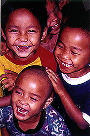 Children in Seh Lah camp were having a great time looking at themselves in the video camera's LCD monitor.