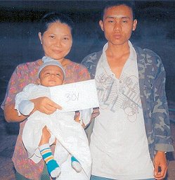 The baby boy is in this photo is held by his proud adoptive parents and he is 3 months old. I took the picture of this precious family during my February 2006 Trip into the refugee camps along the Thai/Burma border. I was fascinated with their story and wanted to share it here.