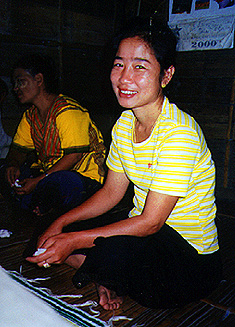 Mein Mein Eh is mother to 3 children - her 4 year old son, a 5 year old daughter, and a 15 year old "adopted" son, Chit Oo. Her husband is a soldier and away from home much of the time. She runs her home in the refugee camp very efficiently. Everything is clean and well cared for. She is also the districts representative for the Karen Women's Organization.