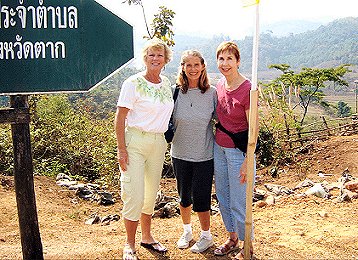 Rudy and Lewis (a Scottish Monk) met us at the hotel at 9:00 AM. When the van arrived we were very surprised. It was not as large as it was supposed to be. When all our bags were loaded in we could see it would be a tight squeeze for 6 of us. Lewis volunteered to sit in the jump seat in back with luggage since, as a monk, he cannot touch a woman. Nan, Chris & I were in the second seats and they were bucket, not bench seats. We weren't sure how we would fit since one of the biggest bags had been squeezed into the space between the 2 seats. Rudy sat in front and we headed for the Honey Hotel to pick up our 5th passenger, Nigel. By the time we'd driven the 10 minutes to the Honey, we had all decided there was no way this would work for 6 hours. Rudy, Nigel and Lewis decided they would send their bags with us and take the night bus to Mae Sot and call us in the morning. I felt badly they couldn't ride in comfort with us, but there was no way 6 of us could be comfortable in the space we had.