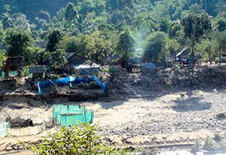 We were told that over 600 homes were destroyed by flooding and water had been over the roofs of many of the homes we passed as we drove on the rutted road along the river. We could see some blue tarps that were serving as roof and walls for many of the bamboo homes.