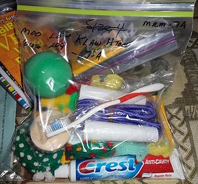 We also had brought in several "zip the blessing" bags from sponsors for their children. The sponsors used gallon zip lock bags and filled them with little gifts for their sponsored child. We decided to divide the clothes and toys into large garbage bags to make it easier for the young people in Mae La camp to carry them into the camp when we unloaded our truck. Rick got everything divided by camp and organized.