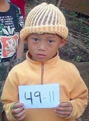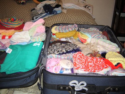 The second suitcase was filled with hand crocheted and knitted booties, caps, scarves and blankets that ladies from "Yarnworks" Ministry at Harvest church, (our home church) had made for the babies and older kids. Here is another photo taken later on in the camps of a child wearing one of the caps.