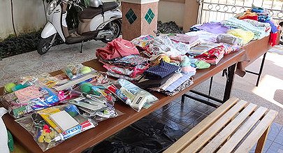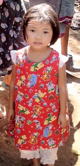 While we waited to travel to Mae La camp, Rick unpacked the two large suitcases we had brought full of toddler and pre-school size jumpers made by the Dorcas Ladies at Pleasant Grove Baptist Church in Ozark, Al. There were about 125 jumpers. The photo on the right was taken later and shows an adorable little girl in one of the camps showing off her new jumper.