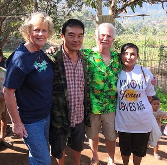 We had seen each other in 2011 but had little time to really visit. Sixteen years ago I had been staying in the jungle with about 150 of the Karen who were trying to stay out of the refugee camps. They had built a little compound in the jungle and even had a little church/school. Several of the families had been tricked into going back into Burma and Lucky and his family were among those who went back into Burma. They were unable to return to Thailand for 15 years. While in the jungle with them, I had given Kyi Kyi a T-Shirt that read "I KNOW JESUS LOVES ME" and she had worn it when they returned to Burma. She had it on when she greeted us in Mae La and I was so surprised to see she had kept it looking almost new for all those years. She told me it was a special reminder of me and my love for them and she made sure it was carefully packed away whenever they had to move. She did not wear it last year when we met again for the first time since they had returned from Burma, and I didn't know that she still had it.