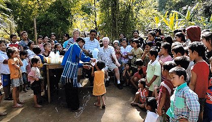 After our good byes, we hiked back to the bridge with several children and parents coming with us. After many tearful good byes, we got in the truck to be taken back to where the pastor lives. Pastor Kasu told us, "We are so grateful for all that you do for us. If it weren't for your sponsors help, many of our Karen would not be educated. Some of the Buddhist families who are sponsored can now send their children to the school where they hear about Jesus for the first time. Some accept the Lord as their Savior, some do not. But at least the seed has been planted. We know that your pastor is a Godly man. I see "Harvest" on many of the children's cards indicating they are sponsored by your church."
