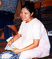 We all breathed a sigh of relief as it came down behind us. I was back in Mae Rah Moo camp! I was so excited and eager to see all my old friends. None of it had changed much in my year's absence. Maybe a few more homes had been added. It is a huge camp with over 25,000 people living there. As the driver pulled up in front of Pastors home, Moo Moo and some of the children came running out to greet me. Creehatha was sitting on the porch, too shy to approach me. When I saw her sitting there alone I could hardly believe it was her.